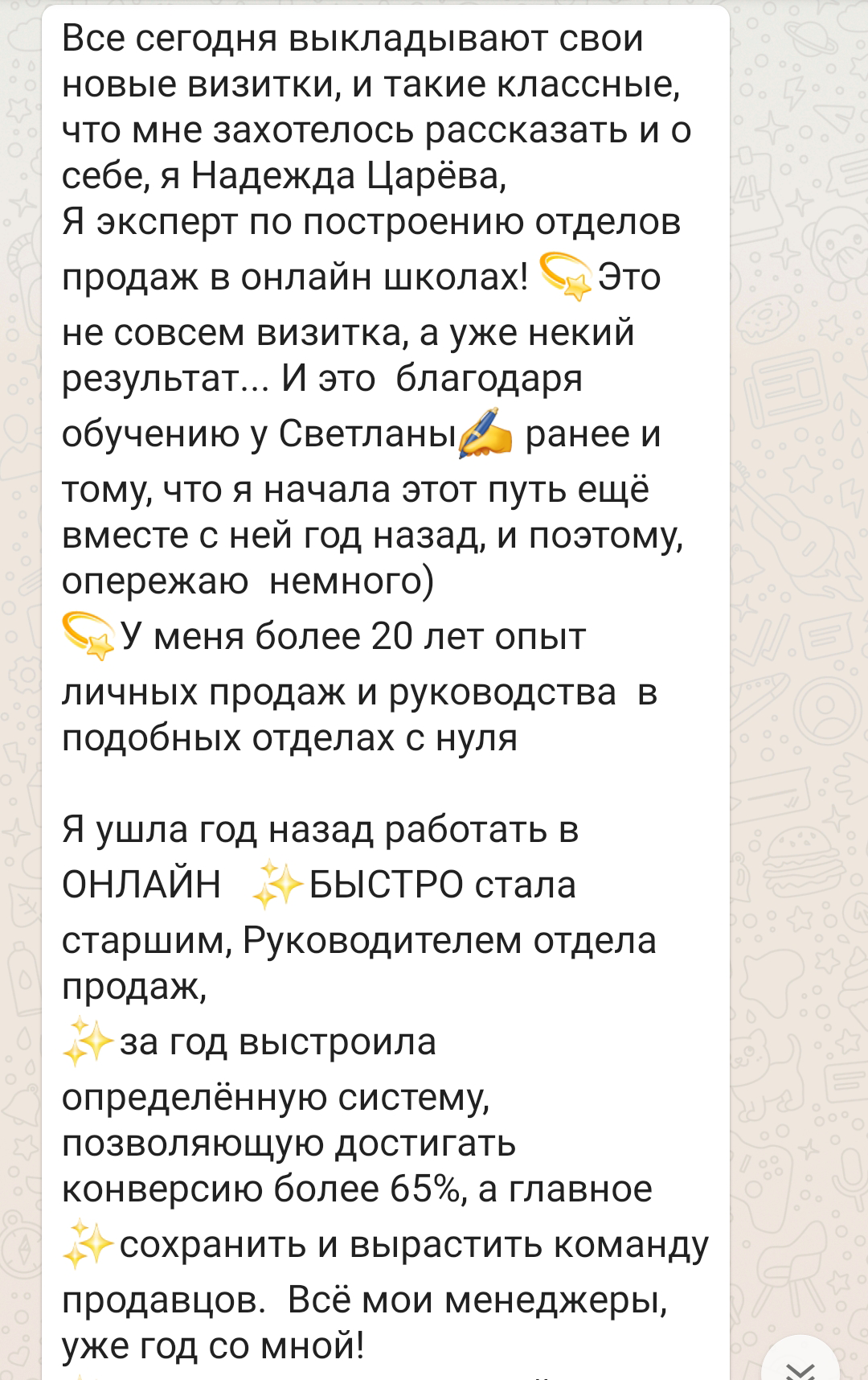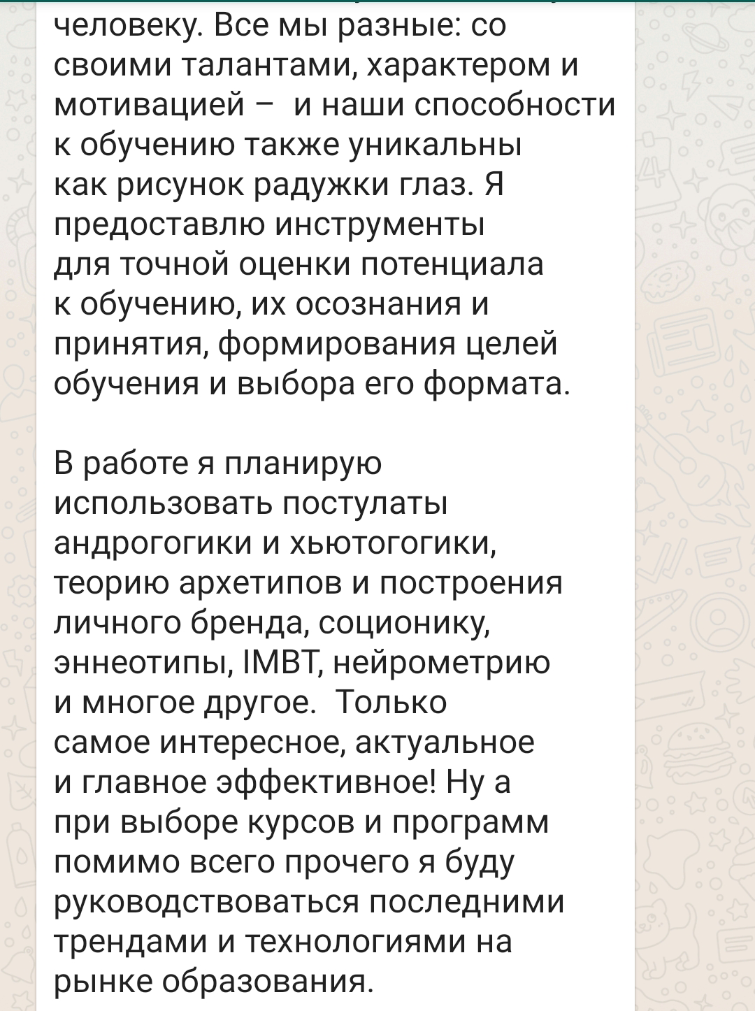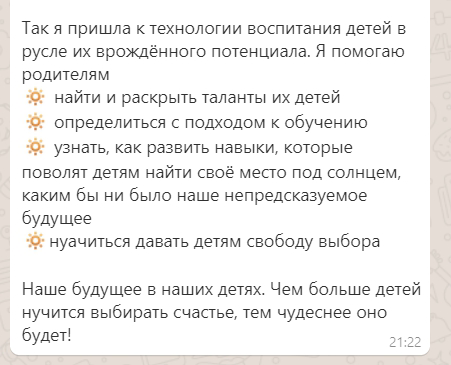 • 5 образований (коучинг, MBA "Инновационный менеджмент", маркетинг, лингвистика, нумерология).